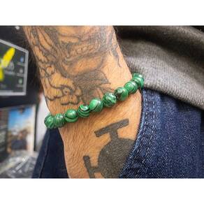 Pulseira Bolinha Pedra Malaquita 8mm Regulável Malaquita: é uma das pedras da Nova Era de Aquário capaz de ajudar na cura espiritual e facilitar a evolução e a expansão da consciência. Material: Cordão Encerado e Murano 8mm Cor: Verde Tamanho: Regulável Base 17cm servindo em tamanho P M GG Marca: Bicudos Acessorios