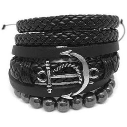 Contém: - 1 pulseira de pedra hematita 8mm - 1 pulseira de couro preta regulável - 1 pulseira de couro preta com âncora regulável Marca: Bicudos Acessorios