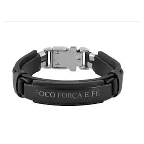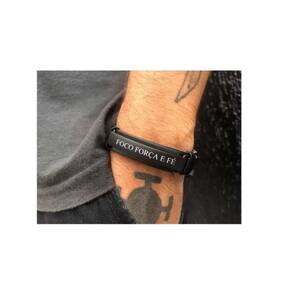 Pulseira Masculina Couro Preto Placa Preta Foco Força E Fé Pulseira masculina ajustável feita em material sintético na cor preta com placa trabalhada na cor preta gravada Foco, Força e Fé com fecho cromado de trava. Além do estilo, beleza, possuem alta durabilidade. Pulseira de qualidade, linda e moderna que pode compor looks de diferentes estilos e ocasiões. Obs: A pulseira pode ser ajustada do 19 cm até o 24 cm de comprimento, mais precisa de apenas um alicate de unha para ajustar a trava que regula o tamanho. - Largura da pulseira: 15 mm - Comprimento da pulseira aberta: 19 cm a 24 cm precisa ajustar o tamanho caso chegue diferente da medida do seu pulso Marca: Bicudos Acessorios