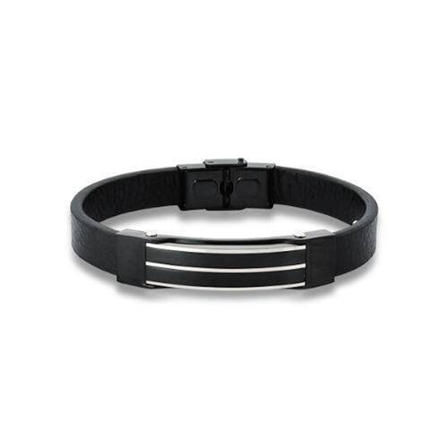 Pulseira Masculina em Courino com Placa Negra em Aço. Use Acessórios Masculinos e dê um up no visual