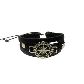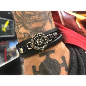 Pulseira Bússola Regulável Preta Material: Couro, Couro Ecológico, Cordão Encerado e Metal Regulagem: Puxando o cordão a pulseira se ajusta no pulso. Cor: Preto Cor do Pingente: prateado Tamanho: Regulável P16cm M18cm G20cm ajustável Diâmetro: 2cm Pingente: 3x2 Estilo: Sport Cuidados com a peça: Evitar molhar com frequência e produtos quimicos na peça perfumes, hidratantes, entre outros... Marca: Bicudos Acessorios