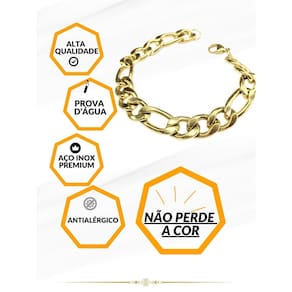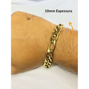 Pulseira modelo fígaro 3x1 em aço inox prata antialérgico a prova d'água. Com 10mm de espessura e 22cm de comprimento, é perfeito para pessoas de personalidade que amam estar na moda.