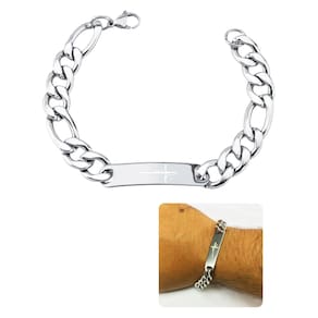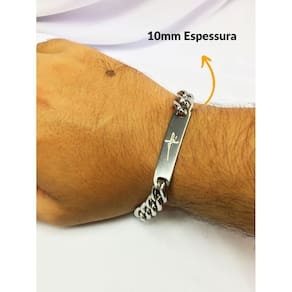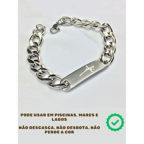 Pulseira modelo fígaro 3x1 em aço inox prata antialérgico a prova d'água. Com 10mm de espessura e 22cm de comprimento, é perfeito para pessoas de personalidade que amam estar na moda. Modelo com placa escrito fé.