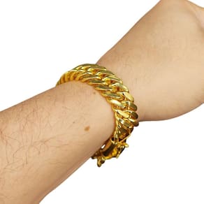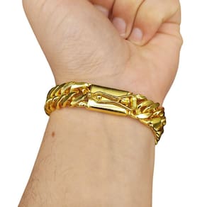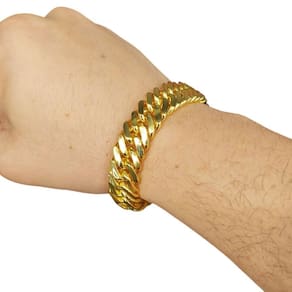 Pulseira Masculina Lacraia 13mm Moeda Antiga Detalhes do Produto: Material: ligas metálicas de alta qualidade, especialmente tratadas para fixação e absorção do ouro, com acabamento em verniz protetor. Aparência: visual idêntico ao ouro maciço. Produção: artesanal, com atenção meticulosa aos detalhes. Banho: 10 camadas espessas de ouro 18k, finalizadas com verniz antialérgico . Elos: soldados varia conforme o modelo . Pedras: zircônias brilhantes cravejadas quando aplicável . Tamanhos Disponíveis: Cordões Masculinos: 70cm padrão e 60cm sob consulta/Pedido Via Chat . Cordões Femininos: 50cm padrão e 45cm sob consulta/Pedido Via Chat . Pulseiras: 21cm padrão ; tamanhos de 18cm a 23cm sob consulta/Pedido Via Chat. Pingentes: conforme imagens; consulte para mais detalhes via chat. Espessuras Recomendadas para Cordões / Pingentes: P: 1mm a 4mm M: 4mm a 8mm G: 6mm a 13mm Gg: 12mm a 18mm Incluso na Compra: Saquinho de organza para armazenamento seguro. Caixa elegante, perfeita para presente. Cupom de desconto para a próxima compra. Flyer com outros produtos da coleção. Carta de agradecimento personalizada. Adesivo da marca ToJoia18k. Informações Adicionais: : 6 meses termos acompanham o produto . Devolução: 7 dias para devolução sem questionamentos. Envio: despacho em até 24 horas úteis após confirmação do pagamento. Cuidados com a Peça: Evite contato com produtos químicos; aguarde o perfume secar antes de usar. Evite contato com shampoo, condicionadores e suor excessivo. Armazene em local seco, preferencialmente no saquinho de organza fornecido. Uso no mar e piscina é permitido; lave com água corrente e sabão neutro após. Por que Escolher a ToJoia18k Semi-joias luxuosas que combinam estilo, qualidade e sofisticação. Banho espesso de ouro 18k, garantindo brilho duradouro e acabamento impecável. Design exclusivo e produção artesanal, perfeitos para qualquer ocasião. Materiais premium que asseguram durabilidade. Ao escolher uma semi-joia ToJoia18k, você investe em qualidade, elegância e uma experiência única. Aguardamos sua compra Observação: pode ocorrer variação no fecho raramente . Imagens reais, sem edição. Qualquer dúvida, estamos à disposição para esclarecimentos. Marca: Não Informado