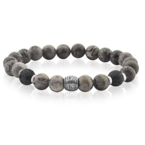 Pulseira Masculina Pedras Mescladas na cor cinza e separador cravejado em Aço Inox ajustável. Use Acessórios Masculinos e Dê um up no seu visual