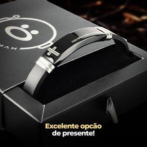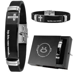Pulseira Masculina Placa Aço Inox Nosso Pai Caixa Preto Pulseira Masculina Pai Nosso Ajustável - 21cm de comprimento Adquira agora esta pulseira masculina, 12mm de largura, com a oração do Pai Nosso gravada discretamente. Além de ser um acessório estiloso, esta pulseira traz um significado especial para quem a usa.