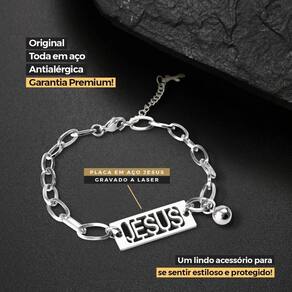- Pulseira Unissex em Aço Inox Prata de alta qualidade. - Comprimento: 25 cm com extensão ajustável. - Pingente: Retangular com gravação a laser do nome Jesus em alta precisão. - Acabamento resistente ideal para uso diário.