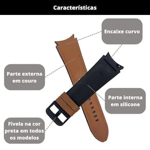 Pulseira com interior em silicone e exterior em material sintético durável. Ajustável com furos para um encaixe perfeito.Tipo
