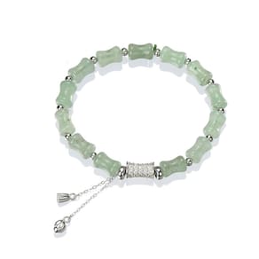 Peso: 14 g Material: contas de nefrite inspiradas em bambu nefrita — Pedras de nefrite verdes exclusivas são moldadas em segmentos de bambu, representando força, resiliência e simbolismo tradicional chinês. Estética oriental elegante — Esta pulseira combina o novo estilo chinês com o luxo minimalista, combinando texturas suaves e um motivo de bambu de inspiração cultural. Cilindro S925 Silver Accent — O pingente central prateado é incrustado com finos detalhes cúbicos, adicionando um destaque refinado que aprimora a aparência sofisticada da pulseira. Corrente ajustável para ajuste personalizado — Equipada com um fecho prateado durável para garantir um ajuste confortável em vários tamanhos de pulso, perfeita para uso diário ou cerimonial. Leve e durável — Pesando apenas 14 g, esta pulseira é confortável de usar durante todo o dia, com durabilidade duradoura de componentes de pedra natural e metal de qualidade.