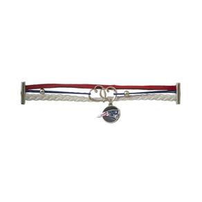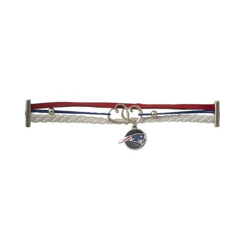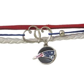 Pulseira new england patriots com pingente - nfl composição 50% couro 40% zamack 10% resina cor: branco / azul / vermelho fechamento metalico newenglandpatriots licenciado oficialmente pela nfl