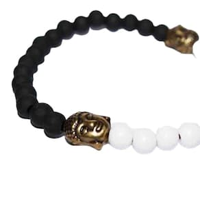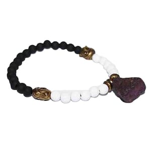Contém Uma Pulseira Nlux Masculina com Purpurita de verdade (100% Natural), miçangas pretas e metal estiloso em contato com a Purpurita.
