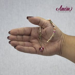 Pulseira Nossa Senhora de Guadalupe Madeira 4 mm Material: contas em madeira 4 mm Contas em pedra natural 6 mm Metais em ouro velho Strass Nylon Regulável Aprox. 21 cm de comprimento Marca: Não Informado