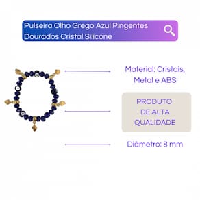 A Pulseira Olho Grego Azul Pingentes Dourados Cristal Silicone da Bialluz possui pedras de alta qualidade feitas de forma artesanal com muito carinho. Com tamanho único, é perfeita para qualquer pessoa. Cheia de boas energias e carregada de fé nossa pulseira emanará muita paz em sua vida!