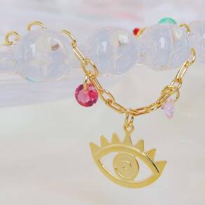 Essa pulseira é composta por um pingente de olho grego e pedrinhas de zircônias no decorrer da corrente, dando um charme único para a peça.
