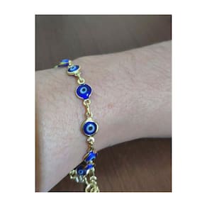Pulseira Folheada A Ouro Olho Grego 18,5Cm - Semijoias Em Caixa De Luxo A Pulseira Folheada A Ouro Olho Grego 18,5Cm é uma semijoia de alta qualidade, banhada a ouro 18k, que possui medalhas com o famoso símbolo do olho grego na cor azul. Esse poderoso amuleto é conhecido mundialmente por afastar a inveja, dissipar energias negativas e proteger contra mau-olhado. Com um comprimento de 18,5cm e extensor de 4,5cm, essa pulseira possui um diâmetro do olho grego de 0,7cm e um peso de 3,1g. Ela é feita com um banho de ouro 18k de alta qualidade, que proporciona uma cor e tonalidade idênticas às de uma peça de ouro genuína. Além disso, a Pulseira Folheada A Ouro Olho Grego 18,5Cm vem acompanhada de uma luxuosa caixa de veludo, onde você pode guardá-la e mantê-la brilhante por muito tempo. É importante ressaltar que todas as nossas semijoias são de alta qualidade e não causam alergias, pois são níquel free, cádmio free e Cinza free. Nossos produtos passam por um rigoroso processo de produção para garantir a segurança e o conforto de nossos clientes. Essa pulseira possui de 6 meses, mediante apresentação do certificado de . Assim, você pode adquirir esse produto com a tranquilidade de saber que está protegido contra qualquer eventualidade. A Pulseira Folheada A Ouro Olho Grego 18,5Cm é perfeita para quem busca uma peça de semijoia sofisticada e cheia de significado. Adquira já a sua e desfrute de toda a beleza e proteção que o olho grego pode oferecer. Marca: Não Informado