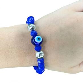 Pulseira Olho Grego Azul Cristal 8 mm para Proteção