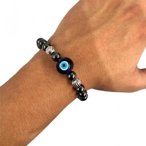 Pulseira Olho Grego Proteção Cor: Azul e Hematita Pulseira Olho Grego Azul Cristal 8 mm para Proteção
