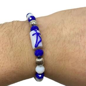 Pulseira Orixá Oxaguiã Umbanda Candomblé - Escolha a Cor   A Pulseira Oxaguiã da Bialluz possui pingentes e cristais de alta qualidade feitos de forma artesanal com muito carinho. Com tamanho único, mas muito versátil por conta do silicone, é perfeita para qualquer pessoa. Cheia de boas energias e carregada de fé nossa pulseira emanará muita paz em sua vida!   Escolha um dos modelos disponíveis na opção COR do próprio anúncio.   Enviamos a sua pulseira em até 24 horas após a confirmação de pagamento!   Dimensões aproximadas: Tamanho dos cristais: 8 mm   Cor: Branco, azul e prata   Cuidados com a sua pulseira: 1 - Evite o contato das peças com produtos químicos e de limpeza em geral, é indicado que você retire sua peça ao manusear produtos como cremes, shampoo, detergentes e perfumes. 2 - O perfume se for aplicado diretamente na peça, pode acabar com o tempo danificando por conta da presença do álcool em sua composição. 3 - Para limpar utilize pano úmido com água. Depois seque bem com pano macio.   Por ser uma peça feita manualmente podem ocorrer pequenas variações nas cores ou tamanhos.   Caso tenha alguma dúvida nos mande mensagem que respondemos rapidinho para te ajudar da melhor forma possível!