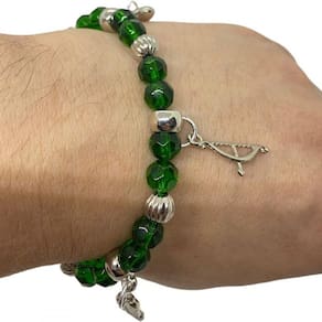 Pulseira Oxossi Verde Penduricalhos Cristal e Silicone Esta linda pulseira de fabricação da Lua Mística é confeccionada artesanalmente com cristais, pedras e elástico de silicone, o que lhe confere durabilidade, resistência, conforto e beleza. É adequada para usar em qualquer ocasião, com design elegante. Excelente para presentear, cheio de amor, carregando promessa e confiança, expressando bênçãos, proteção, sorte e apreciação. É um excelente presente para aniversários, graduações ou apenas ofertar a sorte àqueles que ama. Evite atrito entre as peças para não comprometer o visual. Cremes corporais, perfumes e óleos podem danificar seus acessórios. Utilize flanela macia e seca para limpeza de sua pulseira. Com esses cuidados sua peça terá uma maior vida útil. Gratidão e Sucesso Imagens meramente ilustrativas Tire todas as suas Dúvidas antes de concluir a compra. Iremos responder o mais breve possível. Caixa de papelão ondulado, plástico bolha, conforme necessidade do produto. Consulte nossos preços e condições para vendas no . Fabricação própria, são todos produtos da Lua Mística, enviamos para todo o Brasil, teremos o prazer em atendê-lo. Produto artesanal pintado à mão, tinta lavável e com riqueza em detalhes e cores. Ideal para o seu altar. Ótima resistência e durabilidade. Respostas das dúvidas mais frequentes na ordem: R1: Já realizamos milhares de entregas em todo o Brasil, somos especialistas no que fazemos. R2: Assim que seu pedido for despachado, esta plataforma envia para você o código de rastreamento. R3: Enviamos o produto 100% inspecionado e conferido em nosso checkout e são embalados em embalagem de papelão e plástico bolha. R5: Iremos despachar o seu produto o mais rápido possível, assim que for confirmado pela plataforma, enviamos em até 24h. R6: Nós queremos a sua satisfação, qualquer problema iremos te auxiliar em nossos canais de comunicações.