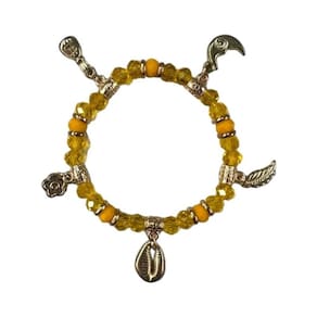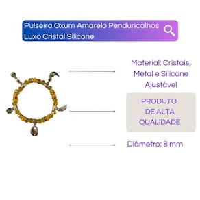 A pulseira Oxum Amarelo Penduricalhos luxo da Bialluz possui pedras de alta qualidade feitas de forma artesanal com muito carinho. Com tamanho único, é perfeita para qualquer pessoa. Cheia de boas energias e carregada de fé nossa pulseira emanará muita paz em sua vida