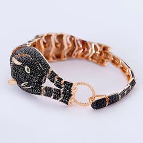 Pulseira em formato de pantera negra inteira é uma semijoia banhada a ouro, cravejada de zircônias pretas, luxuosa e que te deixa em destaque em qualquer situação.