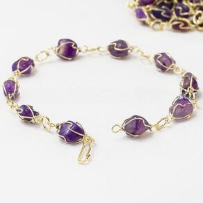 Pulseira Pedra Agata Lilas Na Gaiola Dourado . Pulseira Feita com a pedra dentro da gaiola com arame no fio dourado mineral natural de garimpo com lapidação rolada, pedra. Peça bem Delicada e com uma Levesa Maravilhosa.