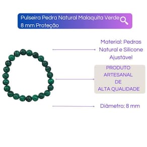 Pulseira Pedra Natural Malaquita Verde 8 mm Proteção Pulseira Pedra Natural Malaquita Verde 8 mm Proteção