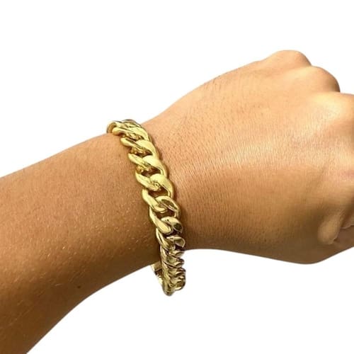 Pulseira Pit Bull 13mm Banhado a Ouro 18K Detalhes do Produto: Material: ligas metálicas de alta qualidade, especialmente tratadas para fixação e absorção do ouro, com acabamento em verniz protetor. Aparência: visual idêntico ao ouro maciço. Produção: artesanal, com atenção meticulosa aos detalhes. Banho: 10 camadas espessas de ouro 18k, finalizadas com verniz antialérgico . Elos: soldados varia conforme o modelo . Pedras: zircônias brilhantes cravejadas quando aplicável . Tamanhos Disponíveis: Cordões Masculinos: 70cm padrão e 60cm sob consulta/Pedido Via Chat . Cordões Femininos: 50cm padrão e 45cm sob consulta/Pedido Via Chat . Pulseiras: 21cm padrão ; tamanhos de 18cm a 23cm sob consulta/Pedido Via Chat. Pingentes: conforme imagens; consulte para mais detalhes via chat. Espessuras Recomendadas para Cordões / Pingentes: P: 1mm a 4mm M: 4mm a 8mm G: 6mm a 13mm Gg: 12mm a 18mm Incluso na Compra: Saquinho de organza para armazenamento seguro. Caixa elegante, perfeita para presente. Cupom de desconto para a próxima compra. Flyer com outros produtos da coleção. Carta de agradecimento personalizada. Adesivo da marca ToJoia18k. Informações Adicionais: : 6 meses termos acompanham o produto . Devolução: 7 dias para devolução sem questionamentos. Envio: despacho em até 24 horas úteis após confirmação do pagamento. Cuidados com a Peça: Evite contato com produtos químicos; aguarde o perfume secar antes de usar. Evite contato com shampoo, condicionadores e suor excessivo. Armazene em local seco, preferencialmente no saquinho de organza fornecido. Uso no mar e piscina é permitido; lave com água corrente e sabão neutro após. Por que Escolher a ToJoia18k Semi-joias luxuosas que combinam estilo, qualidade e sofisticação. Banho espesso de ouro 18k, garantindo brilho duradouro e acabamento impecável. Design exclusivo e produção artesanal, perfeitos para qualquer ocasião. Materiais premium que asseguram durabilidade. Ao escolher uma semi-joia ToJoia18k, você investe em qualidade, elegância e uma experiência única. Aguardamos sua compra Observação: pode ocorrer variação no fecho raramente . Imagens reais, sem edição. Qualquer dúvida, estamos à disposição para esclarecimentos. Marca: Não Informado