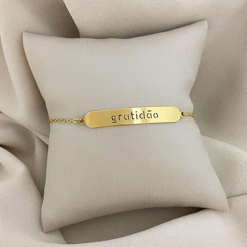 Pulseira Placa Gratidão Banhada a Ouro