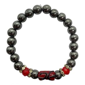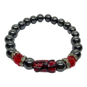 As Pulseiras Pomba Gira Firma Hematita da Bialluz tem um detalhe especial e repleto de luz que é a Firma representando o seu Orixá, confeccionada em vidro e tem um brilho maravilhoso e super resistente. Possui lindas pedras hematitas de alta qualidade feitos de forma artesanal com muito carinho. Com tamanho único, mas muito versátil por conta do silicone, é perfeita para qualquer pessoa. Cheia de boas energias e carregada de fé nossa pulseira emanará muita paz em sua vida