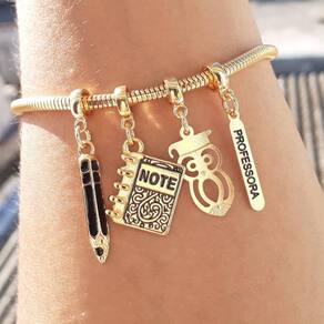 MODELO: Pulseira da profissão professora banhada com 7 milésimos de ouro 18k.