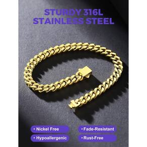 - Material: feita de aço inoxidável 316L, banhada a ouro 18k, a cor dura muito, não mancha e fica preta, nem deixa sua pele verde, parece ouro maciço verdadeiro, não deformável e hipoalergênico. Alta polida na superfície, lisa e confortável de usar