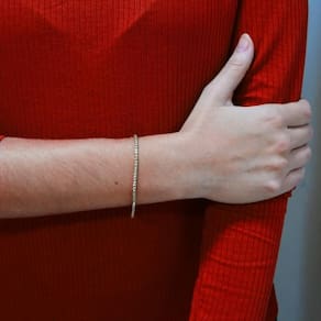 Essa pulseira é o acessório perfeito para pessoas que apreciam o requinte e desejam brilhar intensamente em qualquer ocasião. seu 20cm de acabamento é impecável e a qualidade dos materiais utilizados nessa pulseira é uma joia duradoura, capaz de encantar gerações.