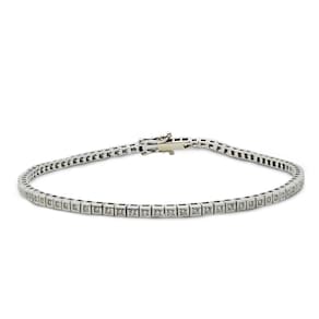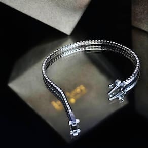 A Pulseira Rivera é uma verdadeira obra de arte feita em ouro Branco 18K. Seu design refinado e elegante destaca-se pela cravação de 80 de diamantes de 0.05 pontos, que adicionam um toque luxuoso e sofisticado.