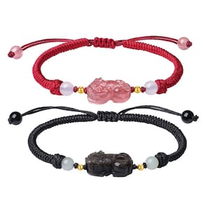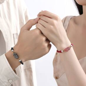Tamanho: Diâmetro do cordão 6 mm, Brave Troops 18,6 x 11,2 mm/21,4 x 12 mm Peso: 11 g Material: prata 925/ágata Símbolo de riqueza e proteção — Apresenta pingentes Pixius esculpidos à mão em obsidiana e quartzo de morango, tradicionalmente acreditado que atraem fortuna e evitam energia negativa. Conjunto His & Hers Matching — Projetado como uma dupla significativa de pulseiras para casais, combinando estética masculina e feminina com cordões de tecido vermelho e preto. Materiais naturais premium — Feitos com detalhes em prata 925, contas de ágata de 6 mm e cristal natural e obsidiana finamente polidos para um apelo espiritual e estético. Cordão trançado feito à mão — a pulseira de tecido ajustável se encaixa confortavelmente na maioria dos tamanhos de pulso, oferecendo uma experiência de uso diário segura e elegante. Elegância de inspiração cultural — Combina o novo design chinês com motivos espirituais tradicionais, perfeito para quem procura acessórios exclusivos e significativos.