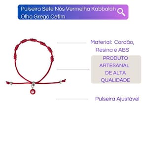 A Pulseira Sete Nós Vermelha Kabbalah Olho Grego Cetim da Bialluz é perfeita para quem busca proteção espiritual e estilo. Com cada nó representando diferentes dimensões espirituais, essa pulseira oferece imunização contra o mau olhado e é uma poderosa proteção contra perigos. Confeccionada artesanalmente com cordão e ABS, a Pulseira Sete Nós Vermelha Kabbalah Olho Grego Cetim é durável, resistente e confortável de usar. Seu design elegante permite que ela seja usada em qualquer ocasião, tornando-a um presente ideal para aniversários, graduações ou para desejar sorte àqueles que amamos. Com peso de 30 gramas e ajustável, essa pulseira é adequada para homens e mulheres. Além disso, ela pode ser benzida, trazendo ainda mais energia positiva para quem a usa. Marca: Meta Atacado Ean: 7890003939659