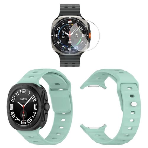 Pulseira silicone + pelicula vidro para galaxy watch ultra Cor da pulseira: tifany Qualidade e compra garantida Atendimento qualificado Enviamos seu pedido em até 1 dia útil após confirmação do pagamento