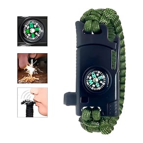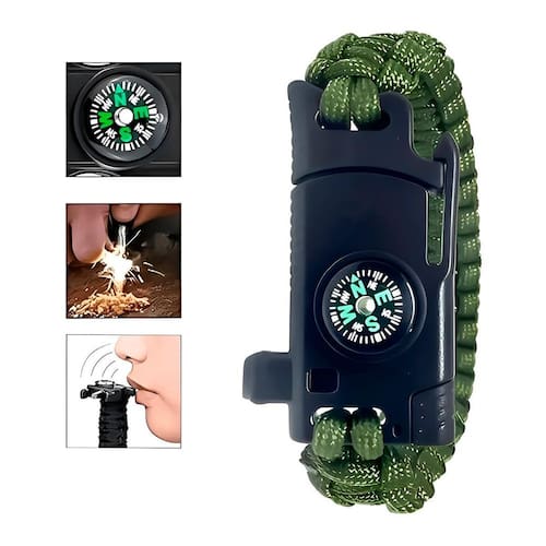 Pulseira Sobrevivência com Bússola Faca e Paracord Pulseira Sobrevivência com Bússola Faca e Paracord - o acessório compacto e multifuncional que garante que você esteja preparado para qualquer situação ao ar livre. Desenvolvida para aventureiros, campistas, trilheiros, pescadores e entusiastas de atividades outdoor, essa pulseira combina robustez, utilidade e conforto em um único item de alta confiabilidade. Seja para explorar a natureza, enfrentar imprevistos ou ter sempre por perto ferramentas vitais, ela é um kit de sobrevivência discreto e eficiente no seu pulso. Fabricada em poliamida de alta resistência com componentes metálicos reforçados, oferece excelente durabilidade mesmo nas condições mais exigentes. O design ajustável proporciona conforto para uso prolongado, sem incômodos, permitindo que você a utilize diariamente sem perceber seu peso até o momento em que precisar dela. Seu visual discreto na cor verde camuflado integra estilo e funcionalidade, ideal para qualquer ambiente. A Pulseira SLK-F02 reúne em seu corpo funções essenciais: - Faca Com lâmina de 3cm, prática para cortes rápidos e emergenciais. - Perdeneira De 2,3cm x 4mm, essencial para acender fogo em situações de sobrevivência. - Bússola Confiável para orientação precisa durante trilhas e expedições. - Apito De alta frequência para sinalização e pedidos de socorro. Além disso, sua estrutura esconde 3 metros de paracord durável, com resistência de até 250LB de tração, ideal para amarrações, reparos e improvisos em situações de emergência. Um recurso versátil que pode fazer toda a diferença em aventuras ou no dia a dia. Especificações Técnicas - Modelo: Pulseira SLK-F02 - Material: Poliamida e Metal - Dimensões aproximadas: 22cm  comprimento  x 3cm  largura  - Funções: Faca, Perdeneira, Bússola e Apito - Faca: 3cm de comprimento - Perdeneira: 2,3cm de comprimento x 4mm de diâmetro - Pulseira: 3m de corda paracord com 250LB de força de tração - Cor: Verde - Itens inclusos: 01 Pulseira SLK-F02 A Pulseira Sobrevivência com Bússola Faca e Paracord é mais do que um acessório: é um recurso estratégico para quem valoriza autonomia, segurança e praticidade. Seu formato portátil garante que você tenha sempre à mão o essencial para lidar com emergências, seja em aventuras de alto risco ou em situações cotidianas. Com a combinação de ferramentas integradas e um material resistente, você estará sempre pronto para agir. Este produto conta com de 3 meses contra defeitos de fabricação, assegurando ao comprador maior tranquilidade e confiança na aquisição. Essa reflete nosso compromisso com a qualidade e durabilidade, garantindo que você receba um item funcional e confiável para suas atividades. Ideal para quem busca desempenho, praticidade e segurança em um único produto, a Pulseira SLK-F02 é o companheiro indispensável para suas próximas jornadas.