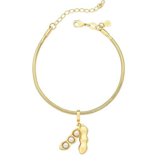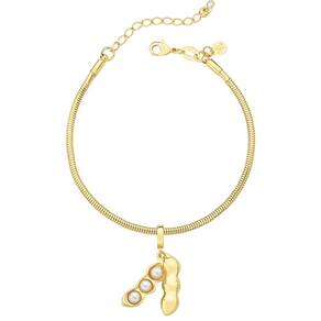 Nossa Pulseira Soja 3 Pérolas traz a clássica corrente rabo de rato e um lindo Charm de Soja com 3 pérolas representando seus grãos. Seu revestimento em Ouro dá o toque final nessa linda combinação.