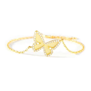 - Pulseira de borboleta: esta pulseira de ouro é adequada para mulheres de todas as idades. Com um comprimento de 15 cm com uma extensão de 5 cm, oferece um ajuste confortável para uso diário e adiciona um toque gracioso, seja utilizado sozinho ou em camadas com outras pulseiras.