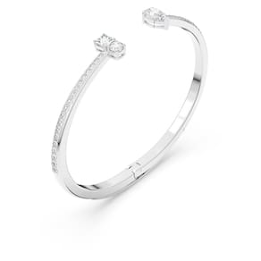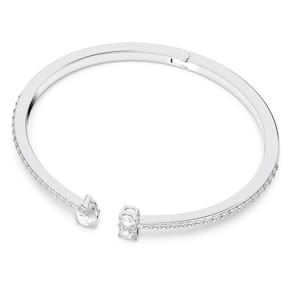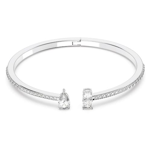 SWAROVSKI Coleção de joias de pulseira Atrair, acabamento em tom de ródio, cristais transparentes, Cristal, Zircônia cúbica - Um visual atemporal para você: este punho da Swarovski é um exemplo impressionante de design atemporal - É coberto com pavé brilhante, criando uma exibição vívida de brilhos - O punho é finalizado com uma pedra maior em forma de gota, oposta a um par de pedras redondas e quadradas - Um visual clássico, perfeito para embelezar roupas do dia a dia