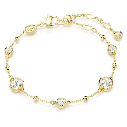 Swarovski Coleção de pulseiras Imber, Cristal, Cristal - Comprimento mínimo: 6 1/5.1 cm; Comprimento máximo: 7 5/20.3 cm; Largura: 1/10.2 cm; Tipo de fecho: Lagosta - Elegância diária: Dê ao seu pulso um brilho distinto com esta pulseira com acabamento dourado brilhante, com um fio de cristais em um design de gota, acentuado em uma configuração de bisel inchado - Brilho brilhante: trabalhada em um acabamento dourado brilhante, esta joia refinada da coleção Swarovski Imber adiciona um toque de sofisticação atemporal ao seu visual - Esplendor gracioso: experimente mais luxo com um cristal transparente brilhante colocado no alongamento, transformando esta pulseira em uma declaração de moda verdadeiramente única que irá cativar a atenção - Projetado para durar: a joia Swarovski mantém seu brilho quando práticas de cuidados simples são observadas; remova antes de entrar em contato com água, loções ou perfumes e polir com um pano sem fiapos - Itens entregues: (1) Pulseira Swarovski Imber com cristais transparentes de corte redondo em uma configuração de moldura bufante com acabamento dourado, completa com uma caixa de pulseira