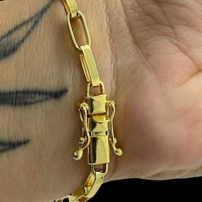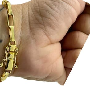Pulseira Tijolinho 6mm Banhado a Ouro 18K Masculina Detalhes do Produto: Material: ligas metálicas de alta qualidade, especialmente tratadas para fixação e absorção do ouro, com acabamento em verniz protetor. Aparência: visual idêntico ao ouro maciço. Produção: artesanal, com atenção meticulosa aos detalhes. Banho: 10 camadas espessas de ouro 18k, finalizadas com verniz antialérgico . Elos: soldados varia conforme o modelo . Pedras: zircônias brilhantes cravejadas quando aplicável . Tamanhos Disponíveis: Cordões Masculinos: 70cm padrão e 60cm sob consulta/Pedido Via Chat . Cordões Femininos: 50cm padrão e 45cm sob consulta/Pedido Via Chat . Pulseiras: 21cm padrão ; tamanhos de 18cm a 23cm sob consulta/Pedido Via Chat. Pingentes: conforme imagens; consulte para mais detalhes via chat. Espessuras Recomendadas para Cordões / Pingentes: P: 1mm a 4mm M: 4mm a 8mm G: 6mm a 13mm Gg: 12mm a 18mm Incluso na Compra: Saquinho de organza para armazenamento seguro. Caixa elegante, perfeita para presente. Cupom de desconto para a próxima compra. Flyer com outros produtos da coleção. Carta de agradecimento personalizada. Adesivo da marca ToJoia18k. Informações Adicionais: : 6 meses termos acompanham o produto . Devolução: 7 dias para devolução sem questionamentos. Envio: despacho em até 24 horas úteis após confirmação do pagamento. Cuidados com a Peça: Evite contato com produtos químicos; aguarde o perfume secar antes de usar. Evite contato com shampoo, condicionadores e suor excessivo. Armazene em local seco, preferencialmente no saquinho de organza fornecido. Uso no mar e piscina é permitido; lave com água corrente e sabão neutro após. Por que Escolher a ToJoia18k Semi-joias luxuosas que combinam estilo, qualidade e sofisticação. Banho espesso de ouro 18k, garantindo brilho duradouro e acabamento impecável. Design exclusivo e produção artesanal, perfeitos para qualquer ocasião. Materiais premium que asseguram durabilidade. Ao escolher uma semi-joia ToJoia18k, você investe em qualidade, elegância e uma experiência única. Aguardamos sua compra Observação: pode ocorrer variação no fecho raramente . Imagens reais, sem edição. Qualquer dúvida, estamos à disposição para esclarecimentos. Marca: Não Informado