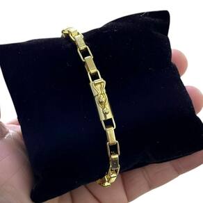 Pulseira Tijolinho Curto 6mm Fecho Canhão Banhado a Ouro 18K Detalhes do Produto: Material: ligas metálicas de alta qualidade, especialmente tratadas para fixação e absorção do ouro, com acabamento em verniz protetor. Aparência: visual idêntico ao ouro maciço. Produção: artesanal, com atenção meticulosa aos detalhes. Banho: 10 camadas espessas de ouro 18k, finalizadas com verniz antialérgico . Elos: soldados varia conforme o modelo . Pedras: zircônias brilhantes cravejadas quando aplicável . Tamanhos Disponíveis: Cordões Masculinos: 70cm padrão e 60cm sob consulta/Pedido Via Chat . Cordões Femininos: 50cm padrão e 45cm sob consulta/Pedido Via Chat . Pulseiras: 21cm padrão ; tamanhos de 18cm a 23cm sob consulta/Pedido Via Chat. Pingentes: conforme imagens; consulte para mais detalhes via chat. Espessuras Recomendadas para Cordões / Pingentes: P: 1mm a 4mm M: 4mm a 8mm G: 6mm a 13mm Gg: 12mm a 18mm Incluso na Compra: Saquinho de organza para armazenamento seguro. Caixa elegante, perfeita para presente. Cupom de desconto para a próxima compra. Flyer com outros produtos da coleção. Carta de agradecimento personalizada. Adesivo da marca ToJoia18k. Informações Adicionais: : 6 meses termos acompanham o produto . Devolução: 7 dias para devolução sem questionamentos. Envio: despacho em até 24 horas úteis após confirmação do pagamento. Cuidados com a Peça: Evite contato com produtos químicos; aguarde o perfume secar antes de usar. Evite contato com shampoo, condicionadores e suor excessivo. Armazene em local seco, preferencialmente no saquinho de organza fornecido. Uso no mar e piscina é permitido; lave com água corrente e sabão neutro após. Por que Escolher a ToJoia18k Semi-joias luxuosas que combinam estilo, qualidade e sofisticação. Banho espesso de ouro 18k, garantindo brilho duradouro e acabamento impecável. Design exclusivo e produção artesanal, perfeitos para qualquer ocasião. Materiais premium que asseguram durabilidade. Ao escolher uma semi-joia ToJoia18k, você investe em qualidade, elegância e uma experiência única. Aguardamos sua compra Observação: pode ocorrer variação no fecho raramente . Imagens reais, sem edição. Qualquer dúvida, estamos à disposição para esclarecimentos. Marca: Não Informado