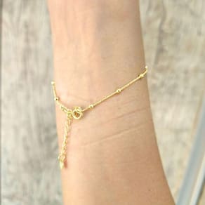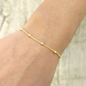 Pulseira Veneziana Com Bolinhas Revestida Em Ouro A Pulseira Veneziana com Bolinhas possui um design delicado e jovial. Uma peça leve e atemporal, permite ser combinada com mais pulseiras e pingentes. Escolha seu pingente na seção Charms.