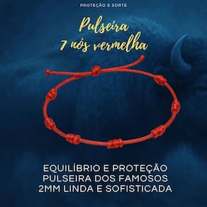 Linda pulseira com 7 nós ajustáveis na cor vermelha, considerada um amuleto de proteção contra más energias. Deve ser amarrada na mão esquerda, que é o lado do corpo por onde a alma recebe todo tipo de energia, sendo as energias protetoras as mais especiais. É importante manter a calma e lidar com tudo com pensamentos positivos ao usar a pulseira. Ao usar, deve-se evitar enviar energia negativa, ter pensamentos negativos, julgar e ser paciente. Cada nó simboliza uma dimensão espiritual, e o uso da pulseira imuniza espiritualmente contra o mau-olhado e fornece proteção do perigo.