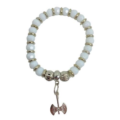 Pulseira xangô machado ayrá branco cristal silicone e pingente Esta linda pulseira de fabricação da lua mística é confeccionada artesanalmente com cristais, pedras e elástico de silicone, o que lhe confere durabilidade, resistência, conforto e beleza.É adequada para usar em qualquer ocasião, com design elegante.Excelente para presentear, cheio de amor, carregando promessa e confiança, expressando bênçãos, proteção, sorte e apreciação.É um excelente presente para aniversários, graduações ou apenas ofertar a sorte àqueles que ama.Mude hoje mesmo o seu destino