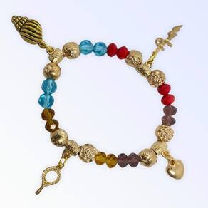 Pulseira yabás pingentes colorida cristal e silicone