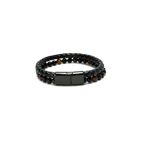 Pulsera De Piedras les Cuero Broche ElegantePulsera Metal de Hombre Masculina Moda BrazaletePulsera Cuero Hombres Acero Cuero Putendencia, versatilidad y personalidad.Por estas três razões los braceletes o pulseras elaborados con cuero se han convertido en complementos indispensáveis. Uma ótima alternativa para combinar junto a otros accesos orios, como relógios ou outras pulseiras, refletindo na roupa um toque único de estilo. O que caracteriza este produto? - Combinação atraente de materiais: couro PU trenzado con piedras les.- Broche de acero imantado para não perderla.- Três modelos para escolher seu favorito: · Cuero PU preto con piedra ojo de tigre· Cuero PU café con piedra ojo de tigre· Cuero PU preto con piedra volcánica y larvikitaSpecific Ações: - Material: couro PU e pedras is.- Diâmetro: 18 cm.