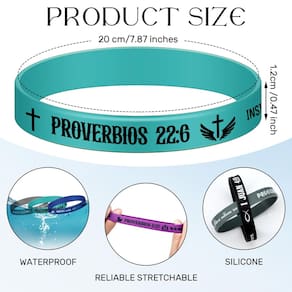 Cada pulseira de silicone cristão exibe palavras e versículos inspiradores da Bíblia espanhola. Projetadas para elevar seu bem-estar emocional, elas promovem uma mentalidade positiva. Use-as, sinta o fluxo de motivação dentro de você e abrace a força em sua fé.